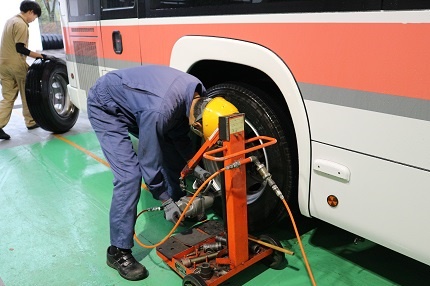 今回は10月13日に行われました電気バスのスタッドレスタイヤ交換についてお伝えしたいと思います。