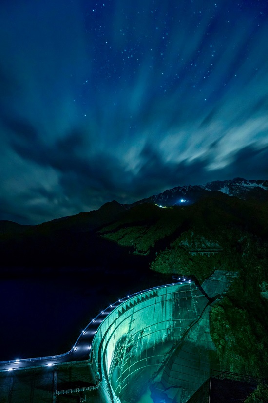残念ながら15日はあいにくの雨のお天気になってしまいましたが、霧の中に浮かぶ幻想的な黒部ダムのライトアップをご覧いただけたのではないでしょうか。(苦しい言い訳でごめんなさい・・・。黒部ダムのライトアップ自体がレアなので、ご容赦ください。)その代わり、大町エネルギー博物館の上原先生より、この時期黒部ダムで見る事が出来る星や星座のお話をじっくりとお聞きすることができました。宇宙のお話、奥が深いですね。あっという間に時間が過ぎてしまいました。